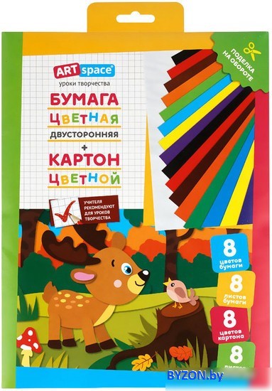 | Информация | Набор цветного немелованного картона ArtSpace станет незаменимым помощником в создании шедевров. Плотность бумаги: 45 г/м2. Плотоность картона: 190 г/м2. То, что нужно для детского творчества, развития мелкой моторики, зрительно-моторной координации, логического мышления и воображения!Формат: А4;Количество листов картона: 8;Количество листов бумаги: 8;Количество цветов: 8;Двусторонний: да. |