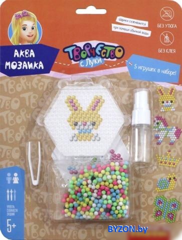 | Информация | Набор "Аквамозаика" Состав набора: набор пластиковых бусин, пластиковая основа, распылитель воды, карточки-трафареты, пинцет Состав: полимерные материалы, бумага 7+ Сделано в Китае |