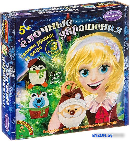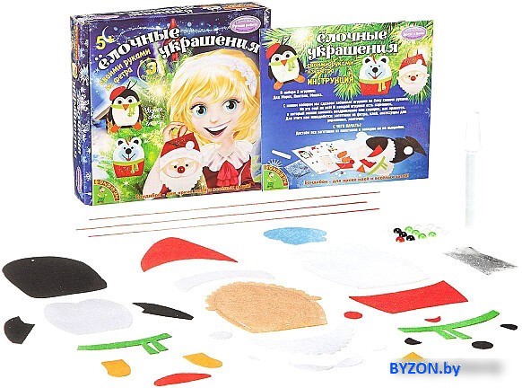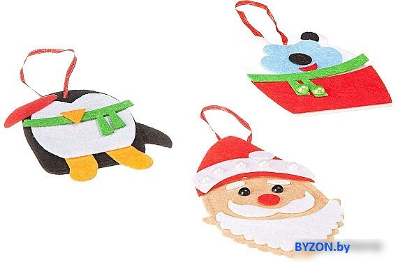 Набор для создания поделок/игрушек Bondibon Елочные украшения из фетра. Дед Мороз, Пингвин, Мишка ВВ1862 - купить в Минске