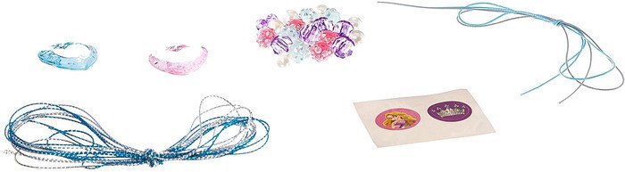 | Информация | Каждая девочка мечтает почувствовать себя особенной! В наборе есть бусины, наклейки, подвески и цветные нити для создания двух нежных браслетов для маленькой принцессы. |
