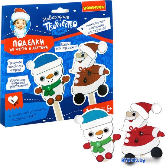 Набор для создания поделок/игрушек Bondibon Поделки из фетра и картона. Дед Мороз и Снегурочка ВВ3077 - купить в Минске