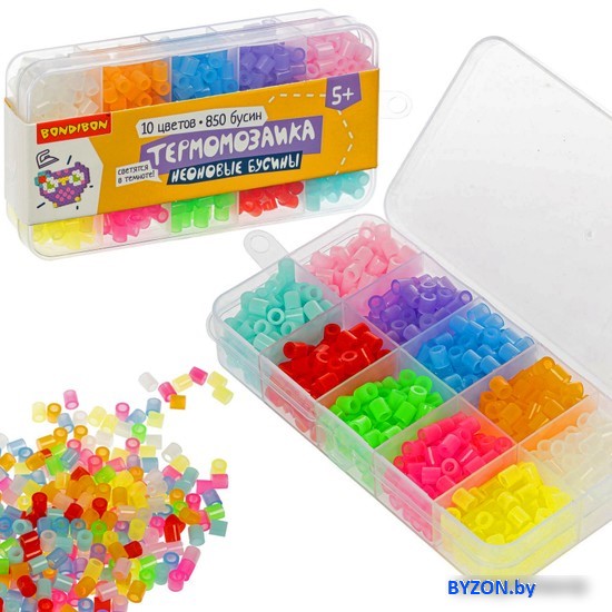 | Информация | В комплекте 850 бусин 10-ти цветов в удобном компактном пластиковом боксе. - отличное дополнение к наборам термомозаики от BONDIBON! В таком боксе бусины для создания поделок из термомозаики удобно брать с собой к подружкам, чтобы создавать игрушки, брелоки и подвески вместе. |