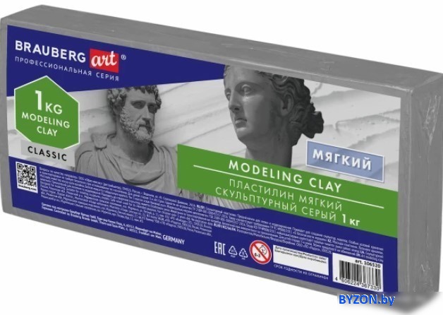 Пластилин скульптурный BRAUBERG Art Classic 106520 (серый) - купить в Минске