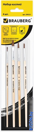 Набор кистей BRAUBERG Из ворса пони 200221 (4 шт) - купить в Минске