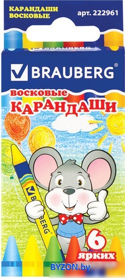 Восковые мелки BRAUBERG Пифагор 222961 (6 цв) - купить в Минске