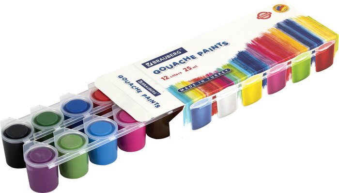 | Информация | Гуашь BRAUBERG «PREMIUM» хорошо наносится на бумагу, картон, дерево, стекло, керамику. Идеальная краска для начинающих художников. В наборе 12 ярких и насыщенных цветов: белый, красный, синий, черный, желтый, зеленый, коричневый, оранжевый, светло-зеленый, розовый, фиолетовый, голубой. Краски полностью безопасны в использовании, не токсичны и не имеют резкого запаха. Гуашь имеет высокую светостойкость и укрывистость, легко размывается водой, хорошо наносится, без труда удаляется с рук и одежды. Краска находится в пластмассовой герметичной баночке, объем которой равен 25 мл. Общий объем — 300 мл. |