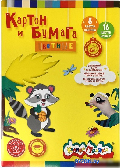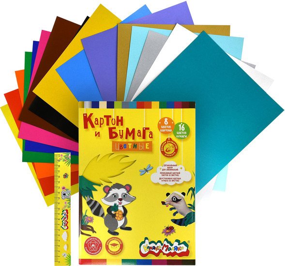 | Информация | В линейке материалов для аппликаций Каляка-Маляка® появился набор с мелованным картоном и двусторонней бумагой формата А4. В палитре 16 цветов бумаги и 16 цветов картона. Окрас яркий, равномерный, без полос. Листы гибкие, легко приклеиваются. Набор предназначен для поделок, аппликаций и рисования, удобен для занятий творчеством в садике и дома, рекомендован детям с 3-х лет. Картон представлен следующими цветами: красный, оранжевый, желтый, зеленый, синий, коричневый, черный, розовый. Бумага представлена следующими цветами: Лицо Оборот Красный   Малиново-розовый  Желтый     Оранжевый  Зеленый  Салатовый  Голубой  Синий  Фиолетовый     Цвет морской волны     Коричневый     Телесный  Розовый  Светло желтый     Черный     Серый  Повышенная плотность и гибкость делает бумагу и картон идеальными для детских аппликаций и поделок: хорошо складываются, образуя аккуратные сгибы и легко приклеиваются. Обладает насыщенными цветами благодаря высокому качеству прокраски. Сгибая, разрезая, наклеивая бумагу, ребенок развивает сенсорику, координацию, знакомится с цветом. Яркий дизайн мотивирует к занятиям творчеством! |