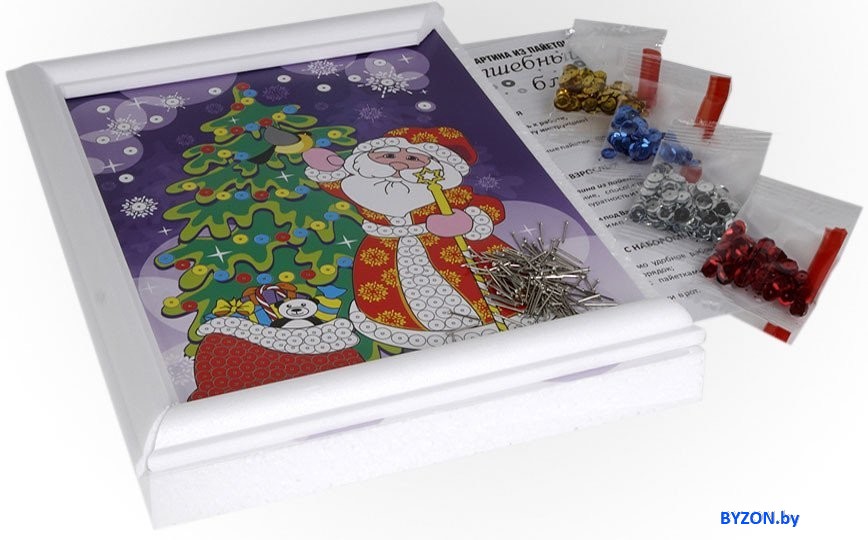 | Комплектация | Разноцветные пайетки, основа размером 20*25,цветная схема, пин-гвоздики, инструкция |