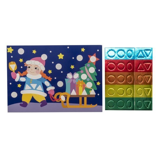 | Информация | Новогодняя коллекция увлекательной мозаики для самых маленьких творцов. Набор для творчества предполагает создание яркой картины с помощью мелких деталей из мягкого материала. Маленькие детали необходимо приклеить на картонную основу в соответствии с рисунком, чтобы картина заиграла по-новому. |