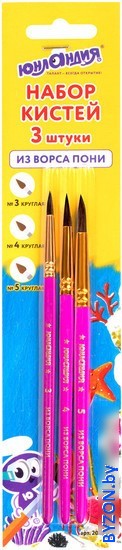 Набор кистей Юнландия Пони 200885 (3 шт) - купить в Минске