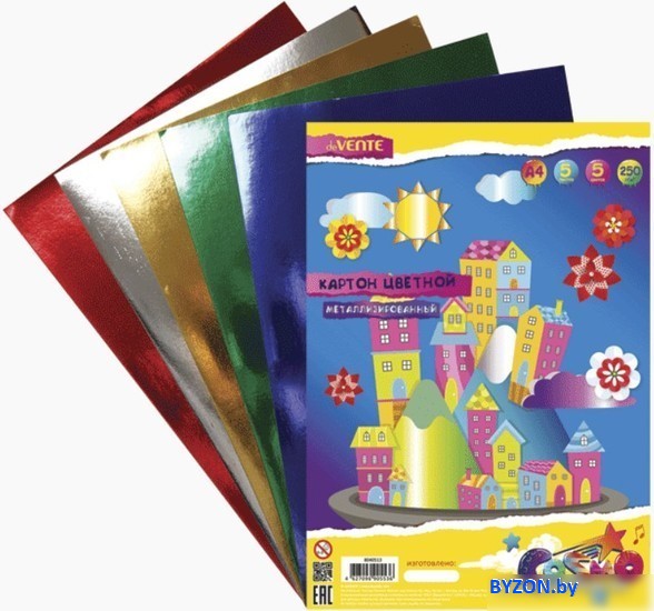 | Информация | Картон цветной металлизированный A4 "deVENTE" 250 г/м? A4, 5 цв, 5 л, пластиковый пакет с европодвесом |