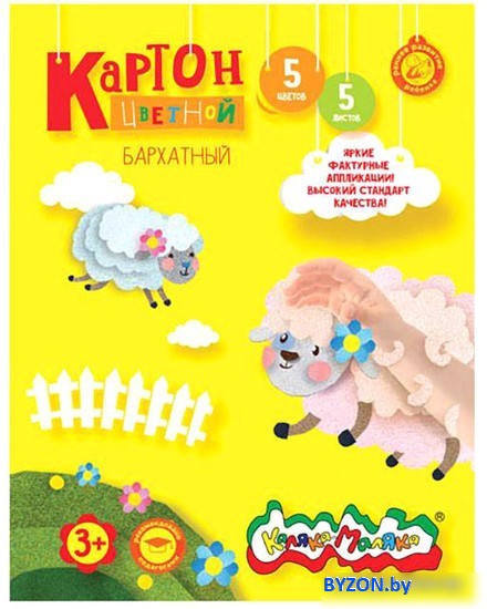 Набор цветного картона Каляка-Маляка Бархатный КБКМ5-2 (5 цв) - купить в Минске