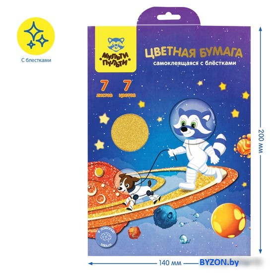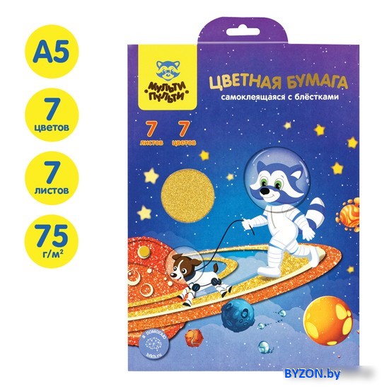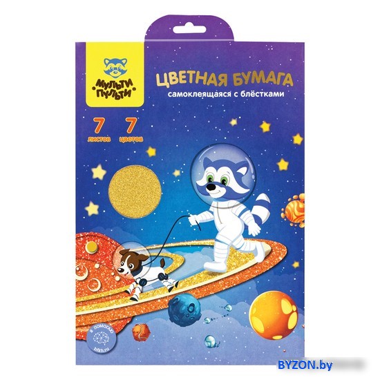 Набор цветной бумаги Мульти-пульти Енот в космосе БЦс7А5_38723 (7 цв) - купить в Минске