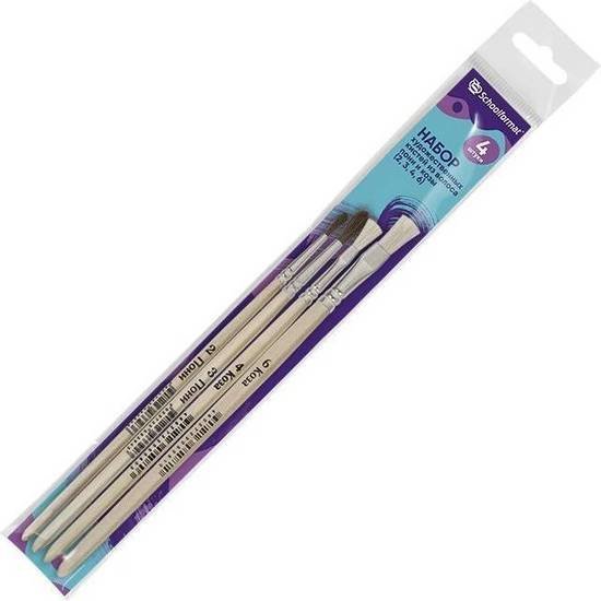 Набор кистей Schoolformat Круглая пони №2, 3 Плоская коза №4, 6 НКПКО-4 - купить в Минске