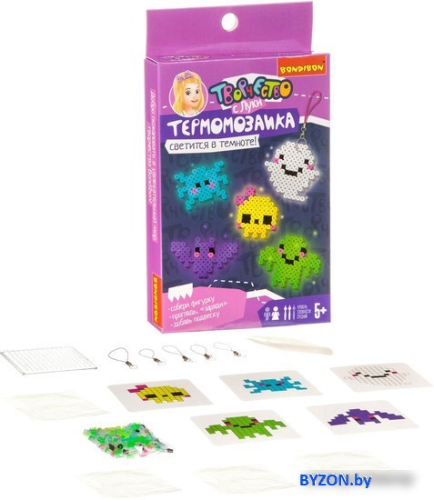 | Информация | ОсобенностиТермомозаика-увлекательный творческий набор! Из цветных пластиковых бусин создаются различные фигурки довольно необычным способом. Фигурку необходимо собрать на форме-планшете и прогладить через кальку утюгом. Обработка горячим расплавит бусинки и скрепит их между собой. Фигурка остынет и с ней можно играть! Кроме того, это необычная мозаика-она светится в темноте! Предварительно "зарядите" фигурку на солнце или под искусственным источником освещения и проверьте в темной комнате! Бонус! С помощью подвесок, входящих в набор, из каждой фигурки можно сделать брелок. Комплектация Термобусины, основа-планшет, инструкция с цветными схемами сборки, калька, подвески для брелоков |
