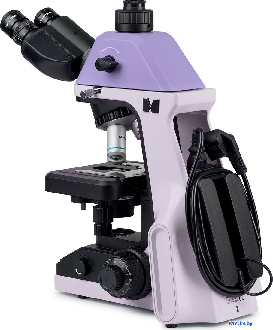 | Информация | - MAGUS Bio 240T – это идеальный студенческий биологический микроскоп, предназначенный для работы в светлом поле и исследования в проходящем свете. Он оснащен кодированным револьвером, который запоминает настройки освещения для каждого объектива, а также встроенным ЖК-монитором для отображения выбранных параметров и тринокулярной визуальной насадкой с отдельным тубусом для цифровой камеры. - Визуальная насадка позволяет устанавливать два окуляра и цифровую камеру, а световой поток можно разделить на 100/0 или 0/100. В комплект входят два окуляра 10х/20 мм, а оптика рассчитана на бесконечность. Для удобства пользователей в очках окуляры комплектуются плоскими наглазниками, которые защищают оптику от повреждений. Также предусмотрена возможность коррекции резкости изображения для людей с близорукостью и дальнозоркостью. - Револьвер имеет 4 гнезда под объективы и расположен так, что рабочий объектив находится перед пользователем, создавая свободное пространство. Кодированный револьвер автоматически настраивает яркость освещения для каждого объектива, что позволяет избежать усталости глаз и экономит время на подстройку освещения. - Фокусировка осуществляется с помощью коаксиально расположенных ручек с грубой и тонкой настройкой. Микроскоп также оснащен рукояткой блокировки грубой фокусировки и кольцом настройки жесткости хода, что обеспечивает комфорт при работе. - Предметный столик не имеет выдвижной зубчатой рейки по оси X, а препарат перемещается плавно благодаря механизму на ременной передаче. Препаратодержатель легко демонтируется при необходимости. - Под столиком установлен конденсор Аббе, который зафиксирован по высоте и отцентрирован, что исключает случайные смещения. Регулировка апертурной диафрагмы осуществляется с помощью цветных меток на кольце конденсора. - Для подсветки используется светодиод на 3 Ватта с возможностью выбора цветовой температуры от 3000 К до 7000 К. Светодиод рассчитан на 50 000 часов работы, а все настройки отображаются на встроенном экране. - Микроскоп имеет компактные размеры и легкий вес, что позволяет легко переносить его за ручки, встроенные в штатив. Провода и адаптер сети аккуратно спрятаны на задней стенке. - Основные особенности включают кодированный револьвер на 4 объектива, «умное» освещение, встроенный ЖК-дисплей, тринокулярную визуальную насадку и преднастроенный конденсор. - В комплект входят все необходимые элементы для работы, включая штатив, конденсор, объективы, окуляры, адаптер питания и пылезащитный чехол. Дополнительно можно заказать цифровую камеру, калибровочный слайд и монитор. |