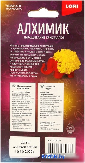 Набор для опытов Lori Выращивание кристаллов Животные Красный слоник Крп-009 - купить в Минске