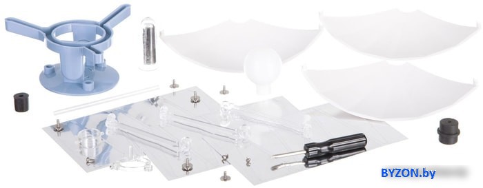 | Состав набора | В состав набора входят подставка, фиксатор, нижняя опора, полукруглая головка, 3 кронштейна, муфта, 3 отражателя, резиновые заглушки, фольга, паросборник, черная негорючая ткань, шурупы, отвертка, пластиковая трубка. |