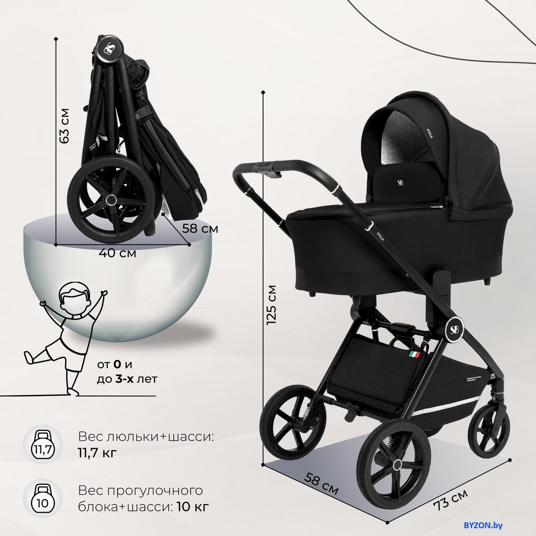 Универсальная коляска Sweet Baby Stella 2в1 (черный) - купить в Минске