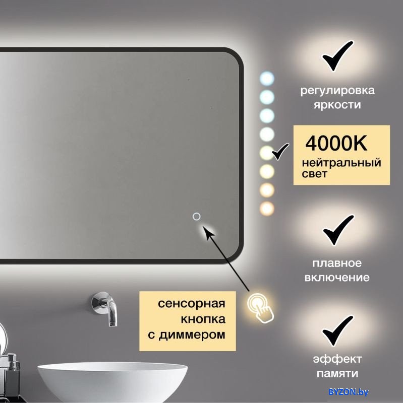 Код товара: 4657354 Рейтинг: 80 18| -65,24 100x50 см, пластик, прямоугольная форма, установка настенная, черный, подсветка, сенсорное управление