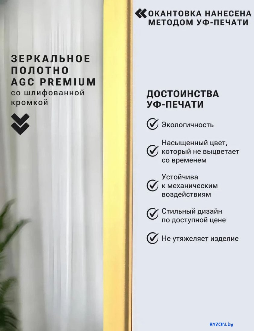 Зеркало с подсветкой eMZe Smartphone 45x77 LED.UV.SMART.45.77.AUR (золото с УФ-окантовкой и подсветкой) - купить в Минске