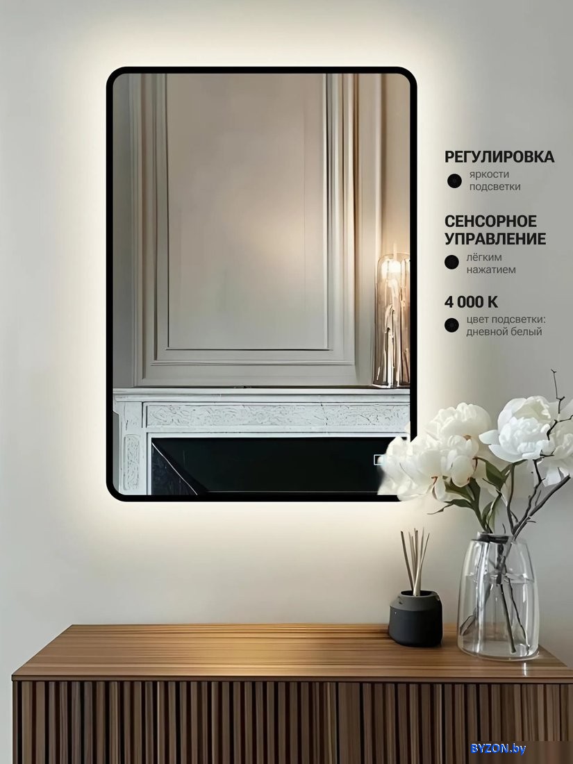 Код товара: 4876147 Рейтинг: 73 12| -63,79 50x70 см, металл, прямоугольная форма, установка настенная/настольная, черный, подсветка, сенсорное управление