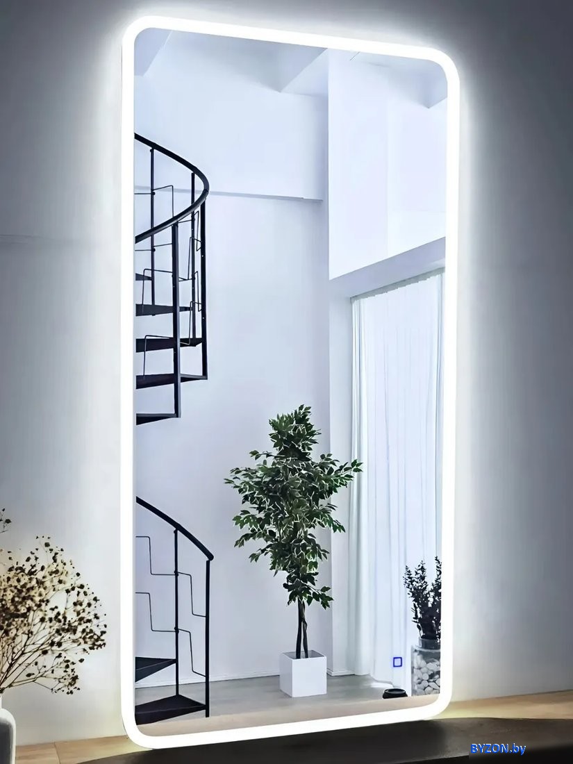 Зеркало с подсветкой eMZe Smartphone 50x100 LED.UV.SMART.50.100.BEL (белый с УФ-окантовкой и подсветкой) - купить в Минске