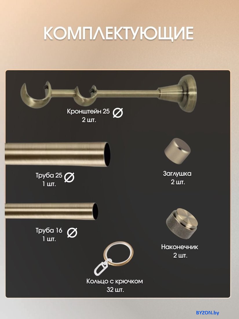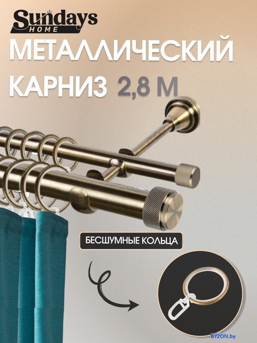Карниз для штор Sundays Home Орсей 25мм+16мм двухрядный составной (антик, 2.8м) - купить в Минске