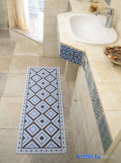 Код товара: 4523207 Рейтинг: 56 2| -52,5 45 x 120 см, прямоугольный, без ворса ворс, белый/голубой/рисунок/черный