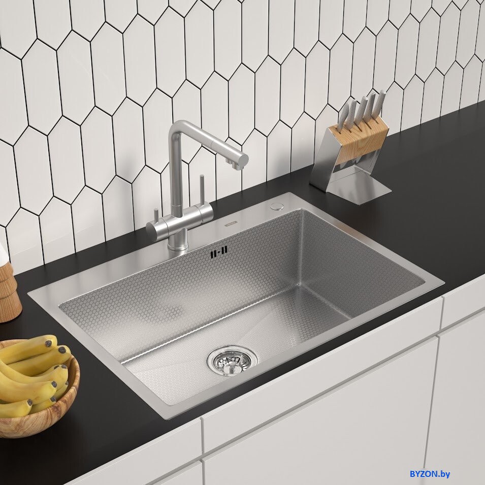 Код товара: 4942245 Рейтинг: 126 1| врезная на столешницу, нержавеющая сталь, фактура: с текстурой, размеры: 70x50 см, глубина чаши: 20 см