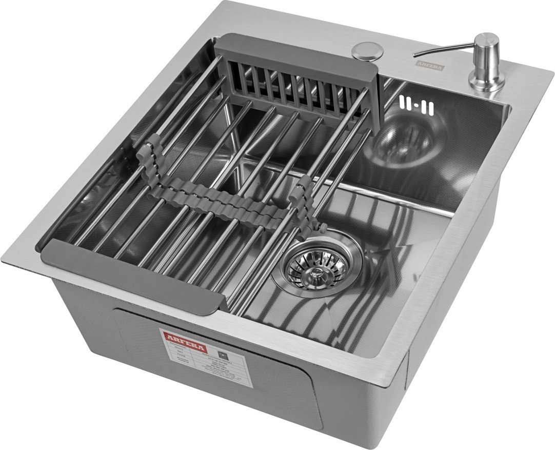 Кухонная мойка ARFEKA Eco AR мойка 450*500, коландер, дозатор SATIN DECOR MILLET GRAINS - купить в Минске