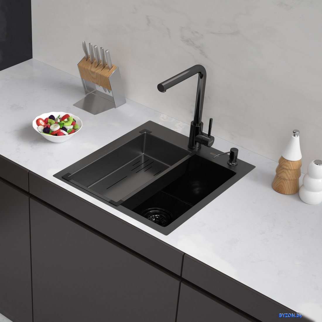 | Комплектация | Кухонная мойка, коландер, дозатор для жидкого мыла, сливная арматура |