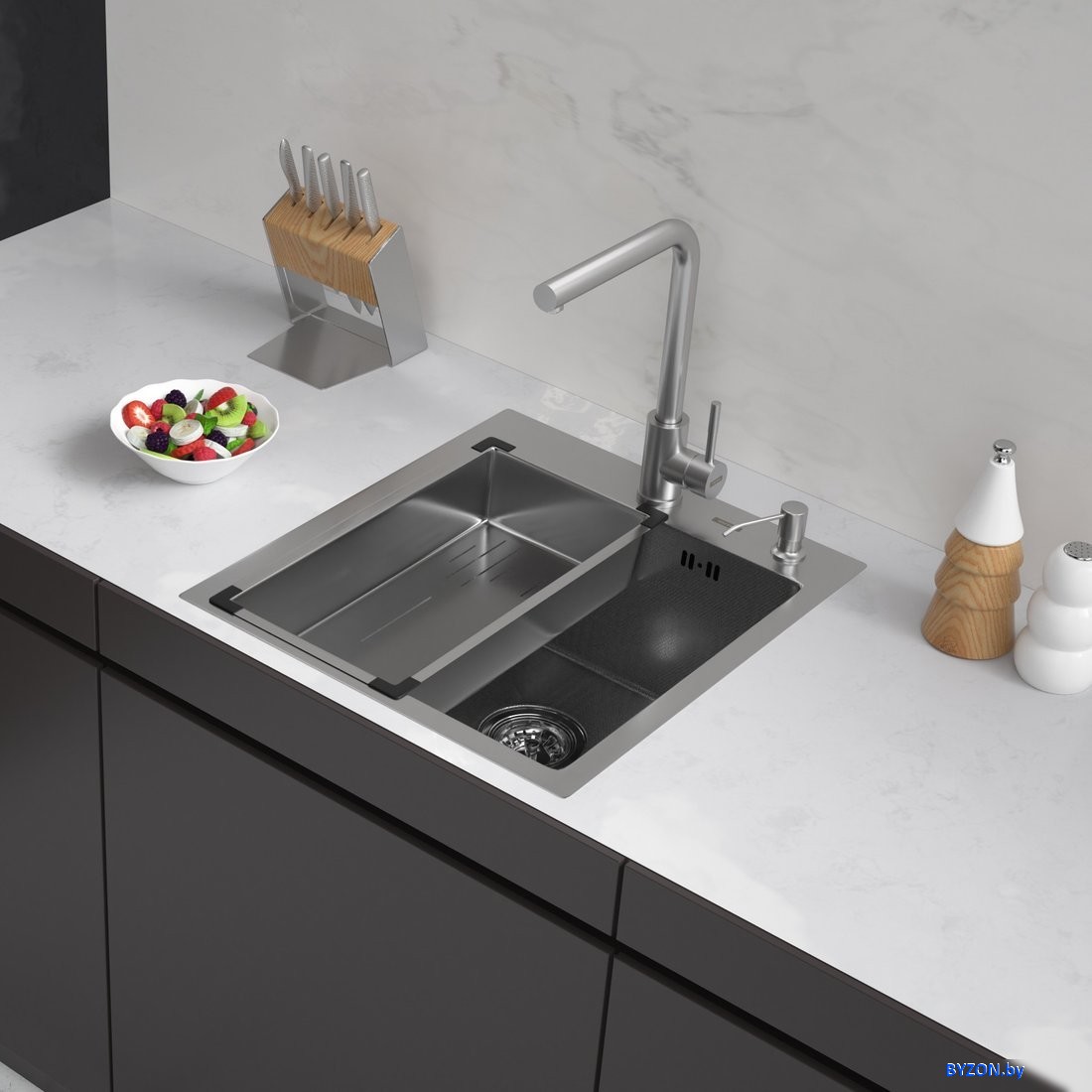 | Комплектация | Кухонная мойка, коландер, дозатор для жидкого мыла, сливная арматура |