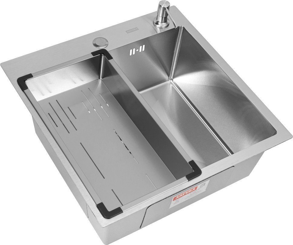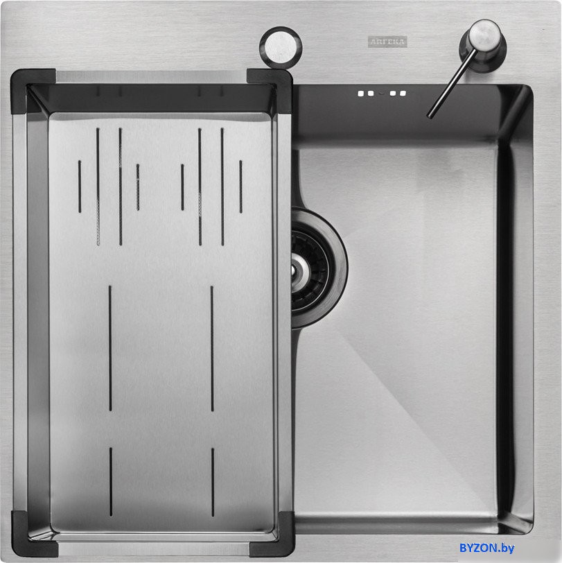 Кухонная мойка ARFEKA Eco AR мойка 500*500, коландер G, дозатор Satin - купить в Минске