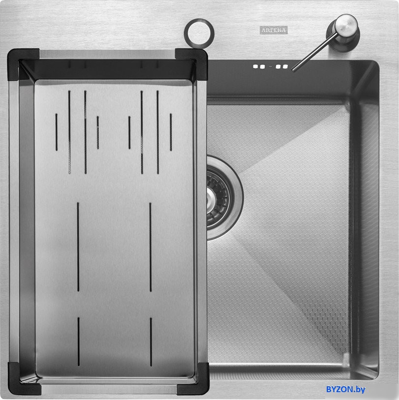 Кухонная мойка ARFEKA Eco AR мойка 500*500, коландер G, дозатор Satin Decor - купить в Минске