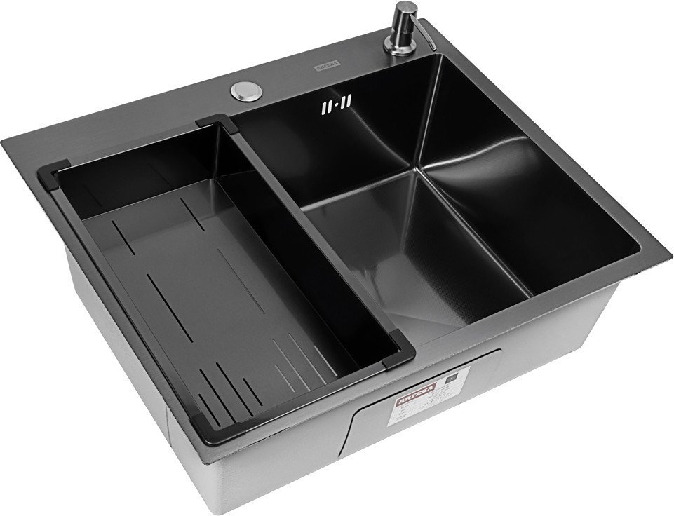 Кухонная мойка ARFEKA Eco AR мойка 600*500, коландер G, дозатор Black Decor Millet - купить в Минске