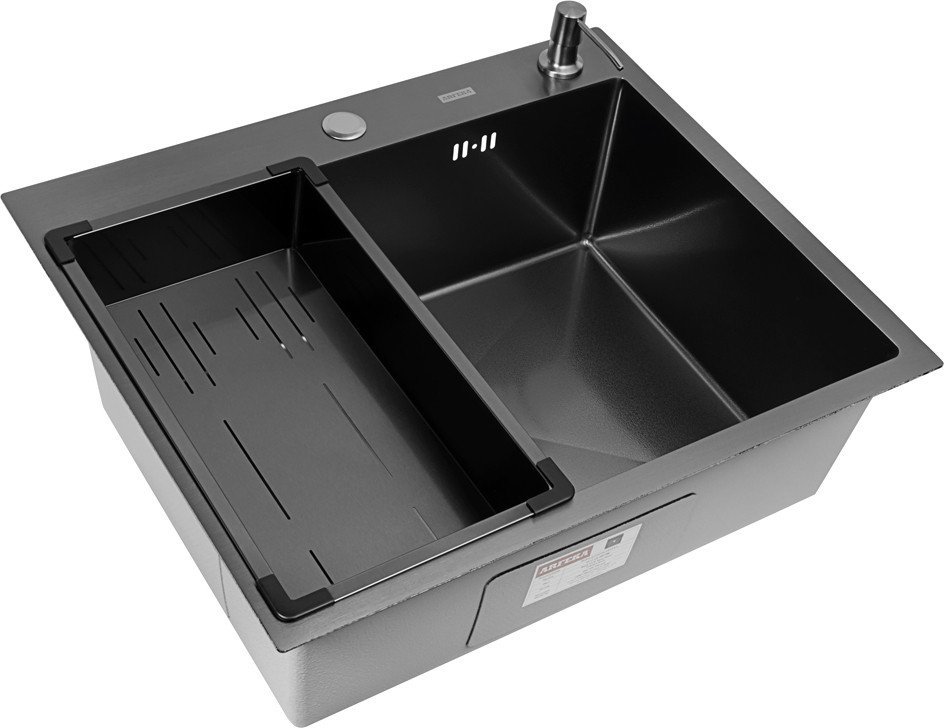 Кухонная мойка ARFEKA Eco AR мойка 600*500, коландер G, дозатор Black Decor Volcanic - купить в Минске