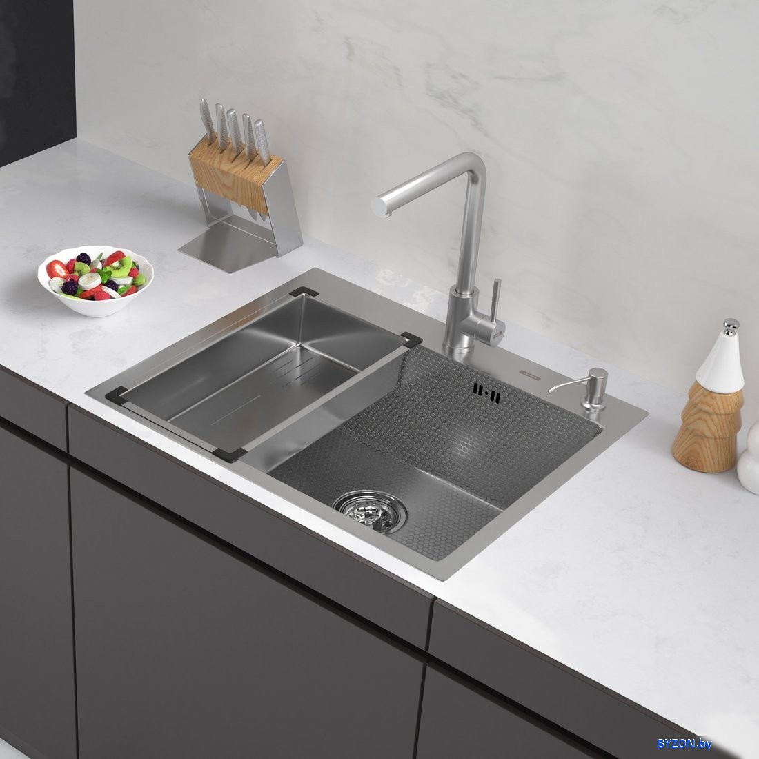 Кухонная мойка ARFEKA Eco AR мойка 600*500, коландер G, дозатор Satin Decor - купить в Минске