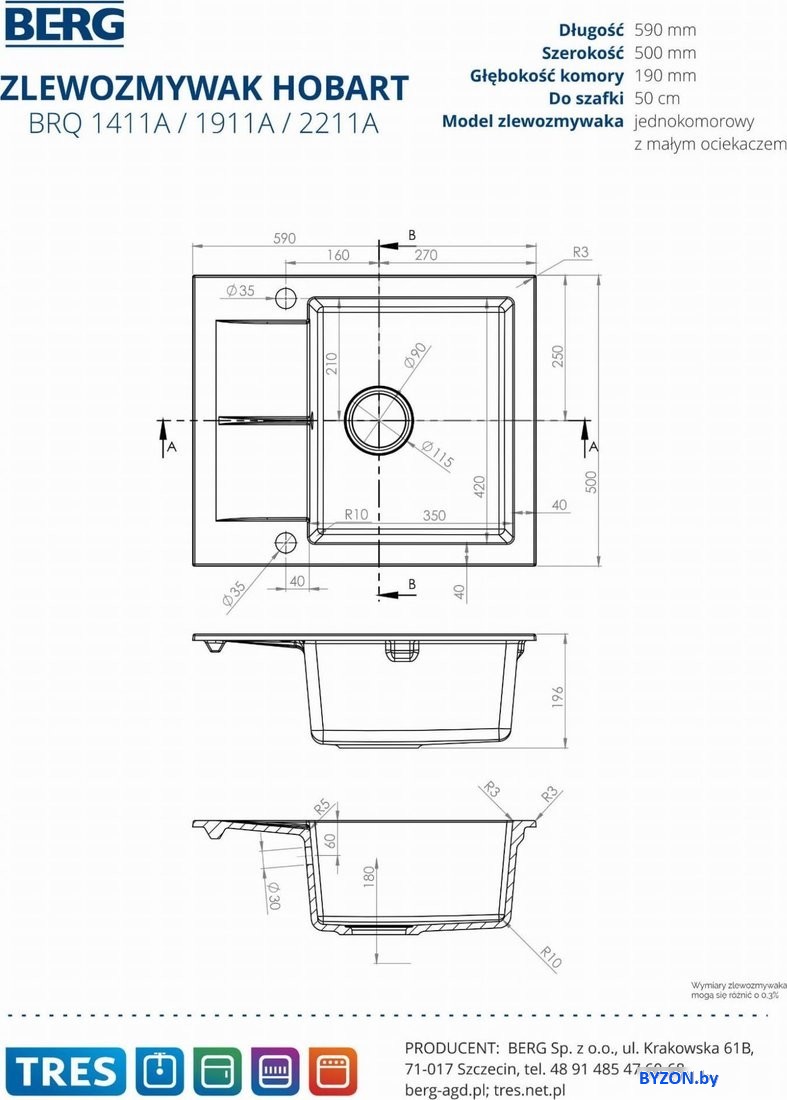 Кухонная мойка Berg Hobart BRQ2211A - купить в Минске