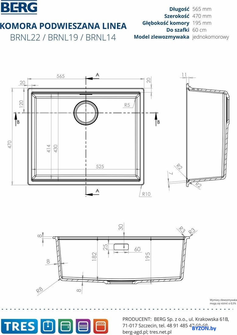 Кухонная мойка Berg Lineal BRNL22L - купить в Минске