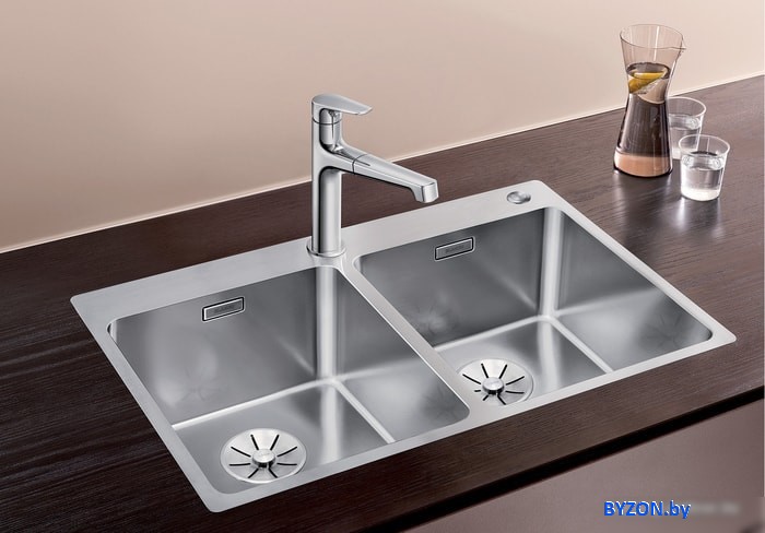 Кухонная мойка Blanco Andano 340/340-IF/A 525248 (с клапаном-автоматом, сатин) - купить в Минске