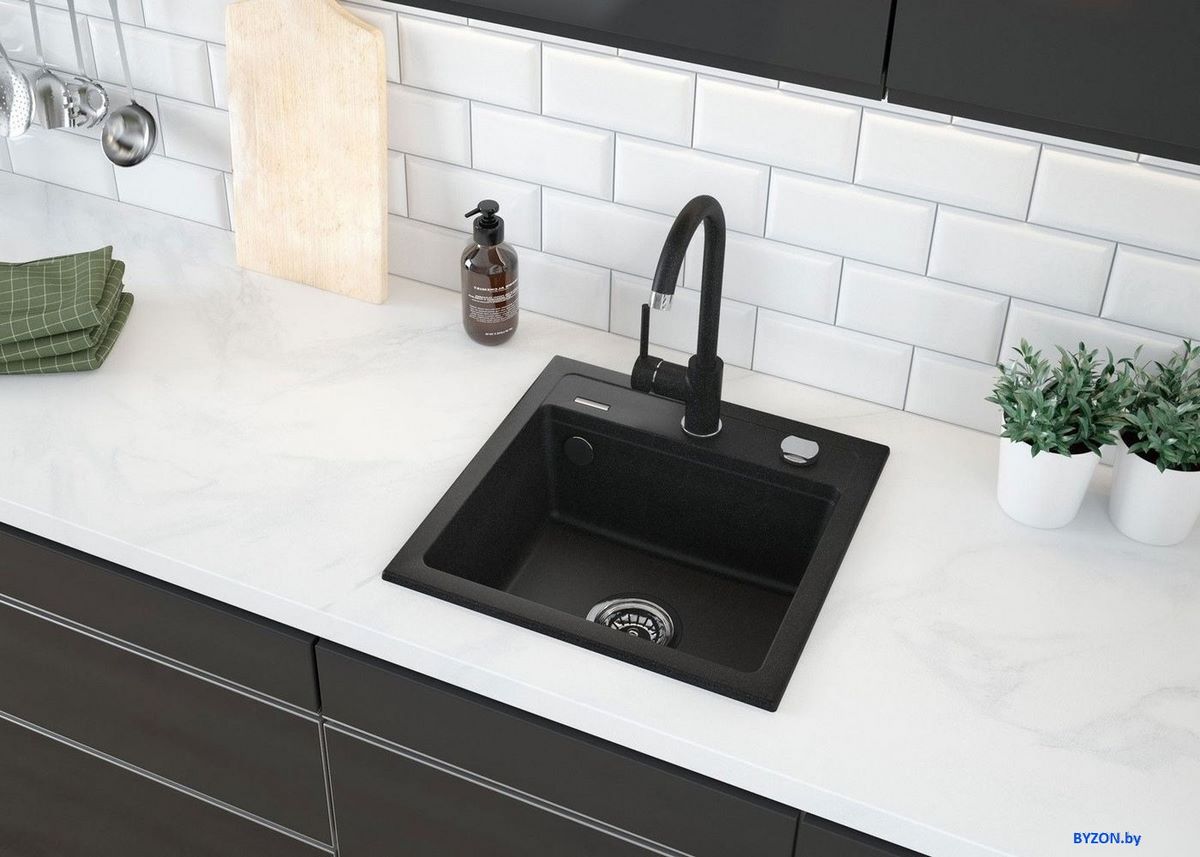 Код товара: 4900776 Рейтинг: 186 10| врезная под столешницу, гранит, фактура: матовая, размеры: 44x44 см, глубина чаши: 17 см, в шкаф шириной от 45 см, клапан-автомат