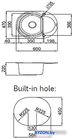 Код товара: 1269400 Рейтинг: 110 1| врезная на столешницу, искусственный камень, размеры: 60x47 см, глубина чаши: 20 см, в шкаф шириной от 45 см
