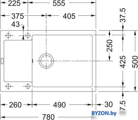 Код товара: 4901505 Рейтинг: 312 10| врезная на столешницу, искусственный камень, фактура: матовая, размеры: 78x50 см, глубина чаши: 20 см, в шкаф шириной от 60 см