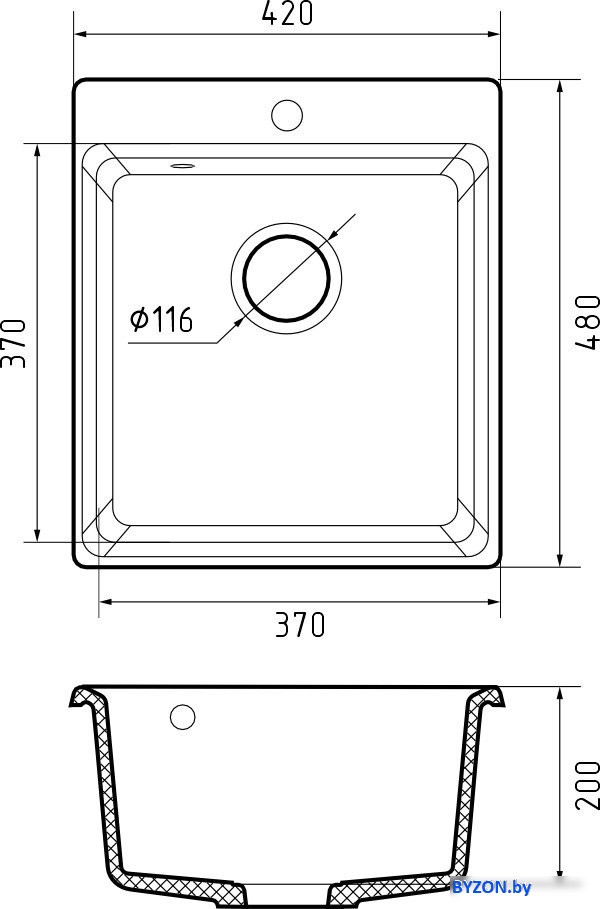 Код товара: 4802624 Рейтинг: 73 1| -21,36 врезная на столешницу, искусственный камень, размеры: 42x48 см, глубина чаши: 20 см, в шкаф шириной от 45 см
