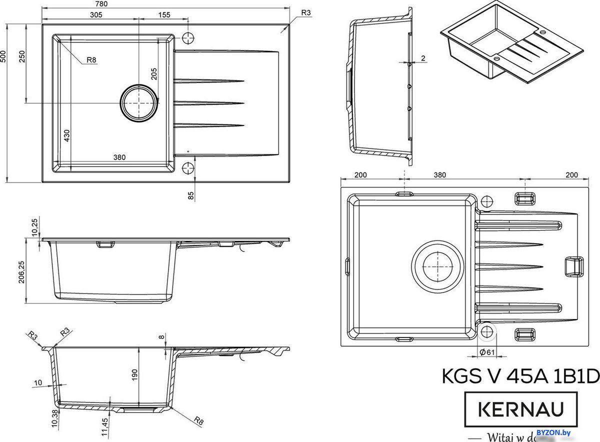 Кухонная мойка Kernau KGS V 45A 1B1D Deep Black - купить в Минске