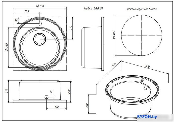 Кухонная мойка Belux BRG-51-01 (черный) - купить в Минске