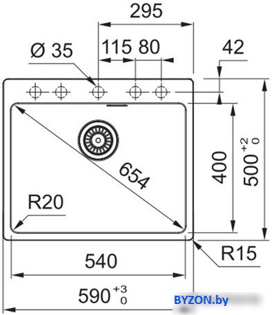 Код товара: 3987009 Рейтинг: 164 1| врезная на столешницу, искусственный камень, размеры: 59x50 см, глубина чаши: 20 см, в шкаф шириной от 60 см, клапан-автомат