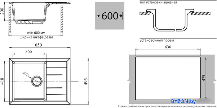 Код товара: 1753351 Рейтинг: 99 1| -26 врезная на столешницу, искусственный камень, размеры: 65x49.5 см, глубина чаши: 20 см, в шкаф шириной от 60 см
