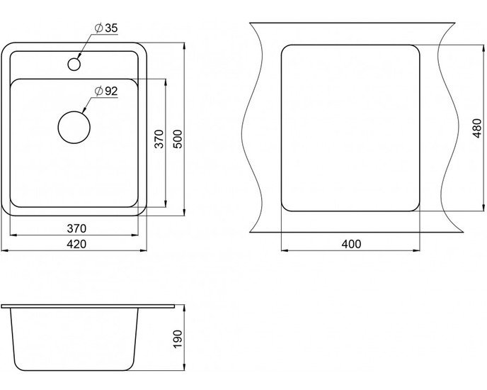 Код товара: 1370997 Рейтинг: 68 17| -96,56 врезная на столешницу, искусственный камень, размеры: 42x50 см, глубина чаши: 19 см